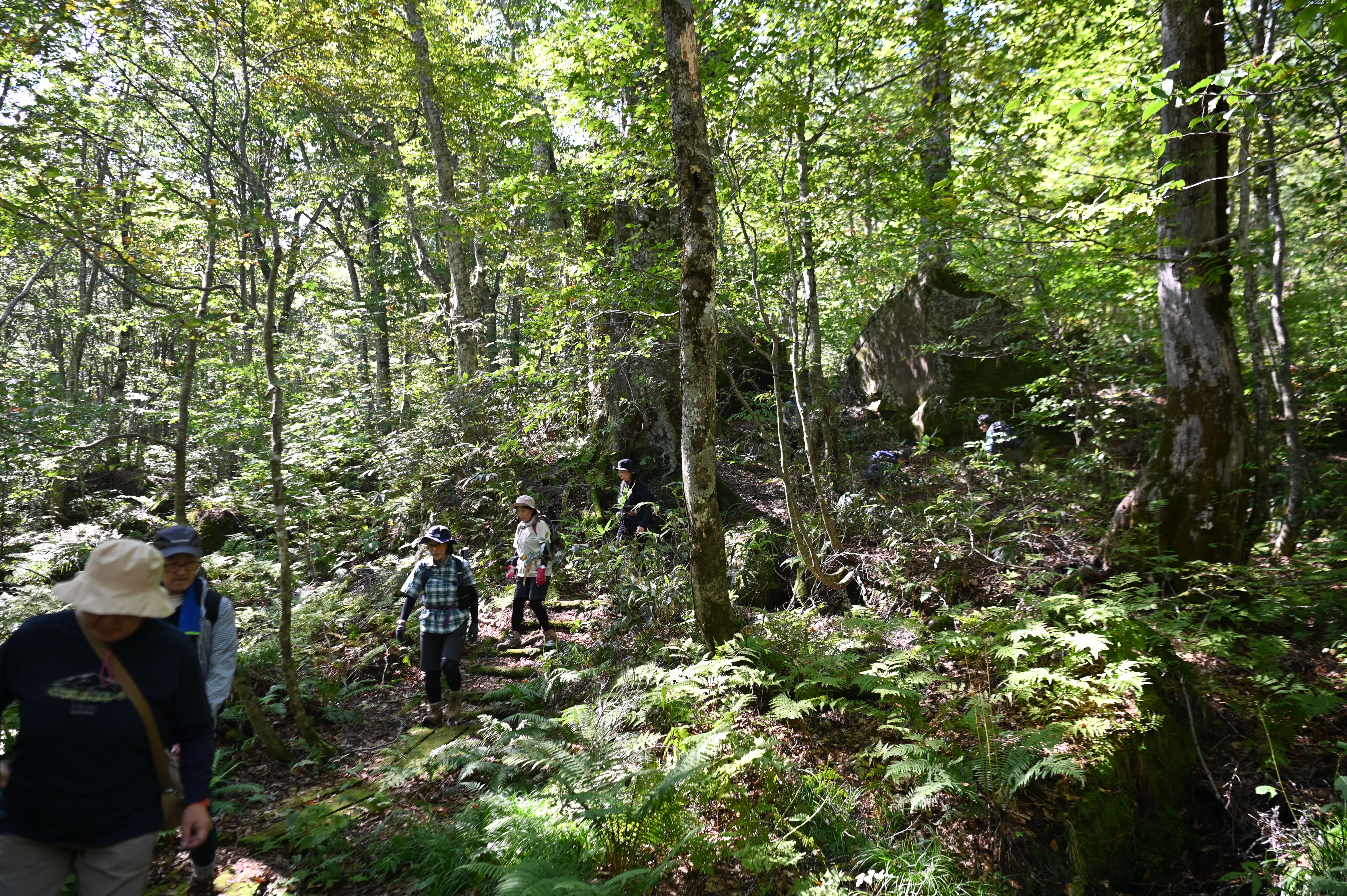 短い散策コースではありますが、二次林、杉林、原生林、白神山地の特徴的な地崩れの痕跡である巨石を楽しんでいただける