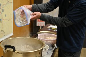 お昼ご飯は、キノコ汁のおいしい作り方をレクチャー&松茸ごはん!少量でしたが楽しんでいただけたでしょうか?
